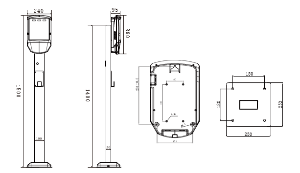 外观结构产品属性 家用版7KW 设备尺寸 390mm*240mm*95mm(L*W*T) 安装方式 地面开孔安装 走线方式 下进下出 线缆长度 5M