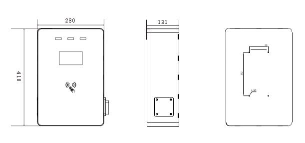 外观结构产品属性 扫码充电钣金版单枪7KW 设备尺寸 410mm*280mm*131mm(L*W*T) 安装方式 壁挂安装 走线方式 下进下出 线缆长度 5M